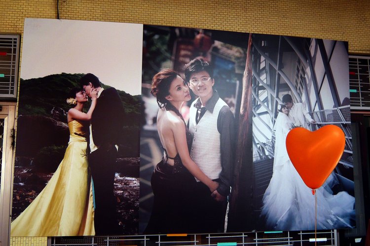 *婆家門口就擺放我們的婚紗大圖,俏皮的伴郎們就在這邊搞笑留影。