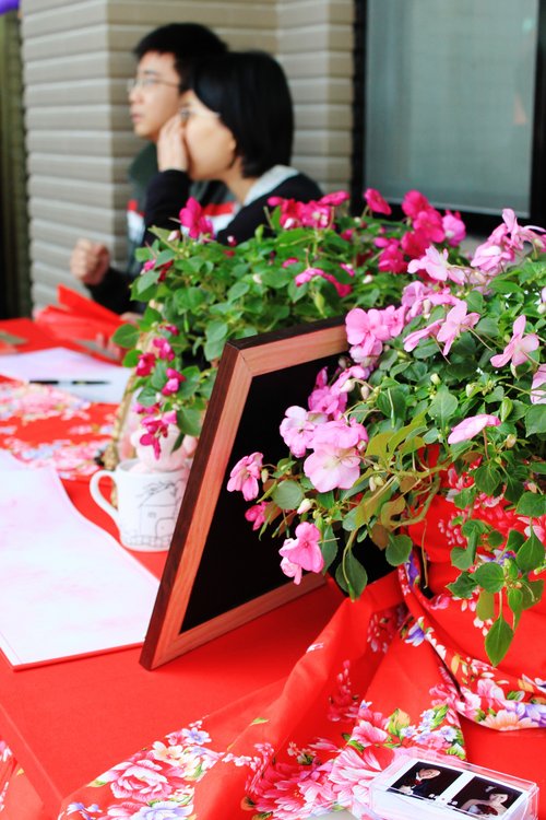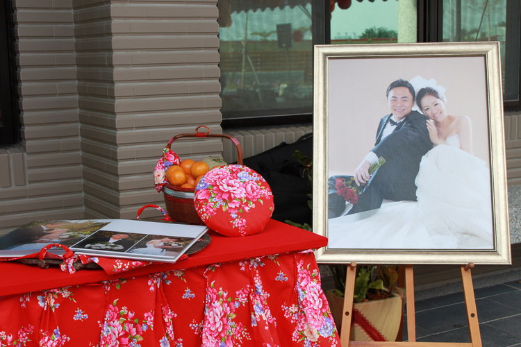 幫桌子繃個紅布 繞個客家花布 就是心目中最佳的禮桌!