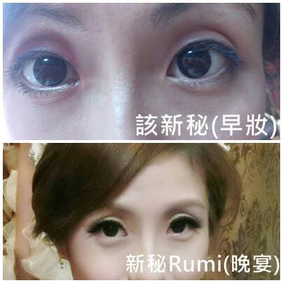 提供該新秘,以及當天103年06月01日晚宴新秘畫的眼妝差異比較圖: