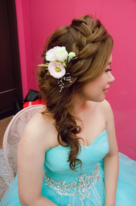 且手上及頭髮上的鮮花也是小絜親手為妳設計的