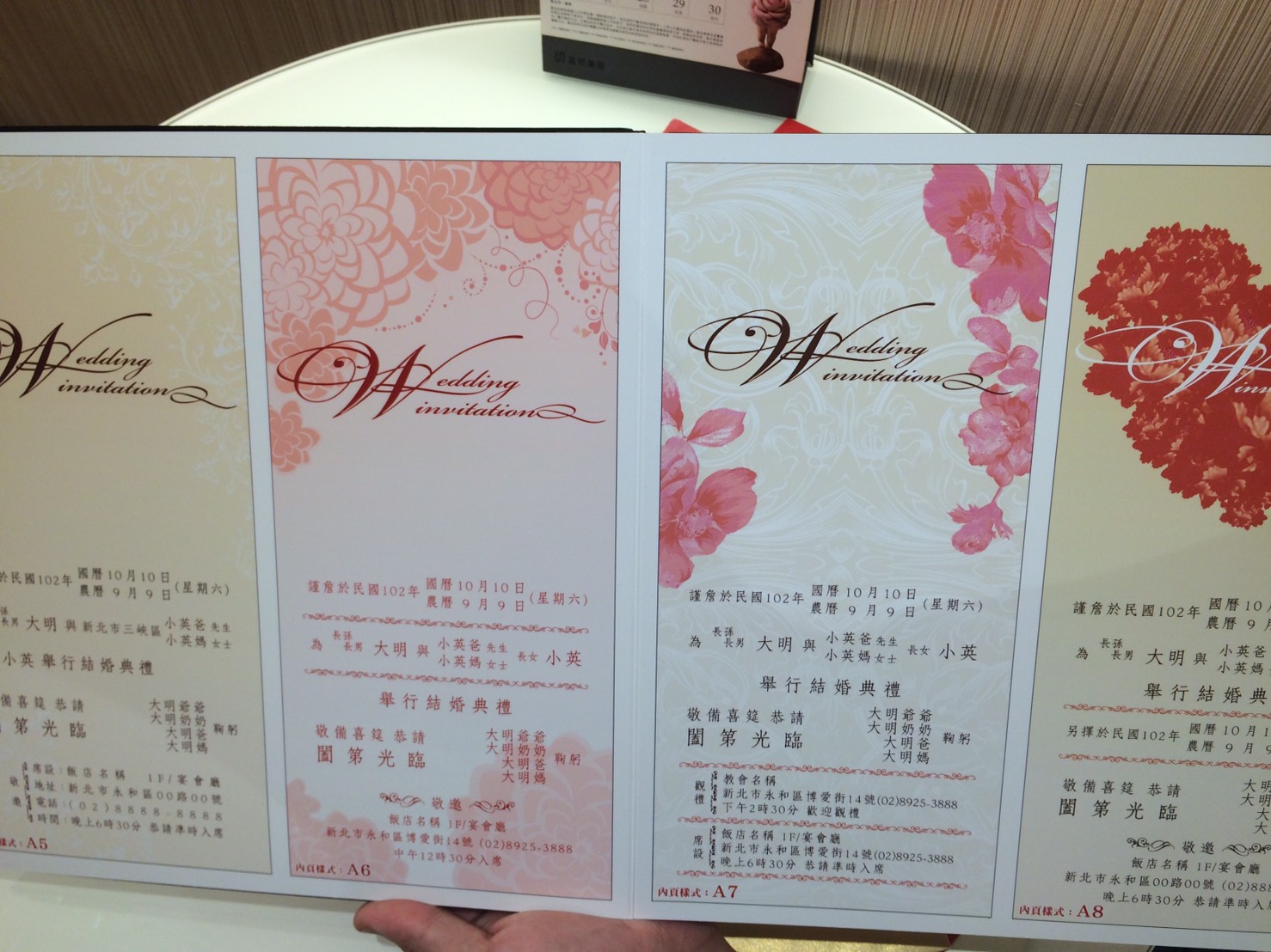 我們在一樓看了很久的喜帖 蠻多款式的 每一張都拿起來看