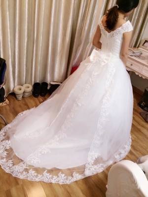 1.M號宮廷氣質大拖尾白紗  送裙撐+拍照手套  ----Only$2000含運費