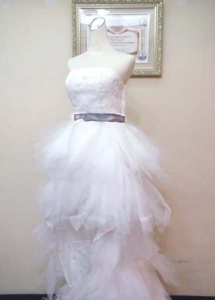 1.M號宮廷氣質大拖尾白紗  送裙撐+拍照手套  ----Only$2000 已售出