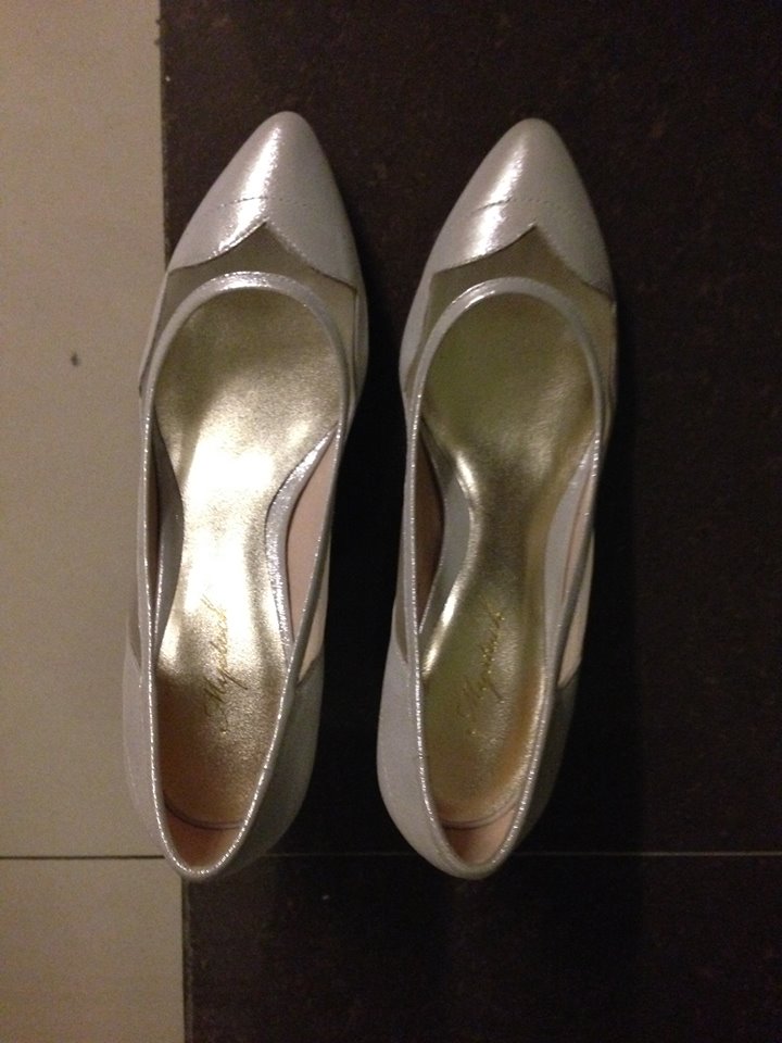 Mystock低跟(大概2 cm)銀色薄紗鏤空婚鞋