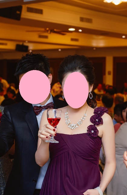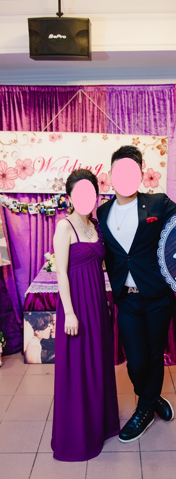 深紫色讓皮膚看起來很白,樣式也很簡單大方不累贅,適合敬酒、送客。