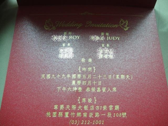 經歷了無數次MSN溝通 才有了這一份喜帖 因為是定結一起 所以決定用同一款
