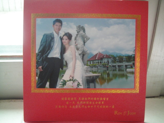 打開之後是放著我們在巴里島拍的婚紗照 這一張照片可是被長輩嫌棄 因為姿勢不好