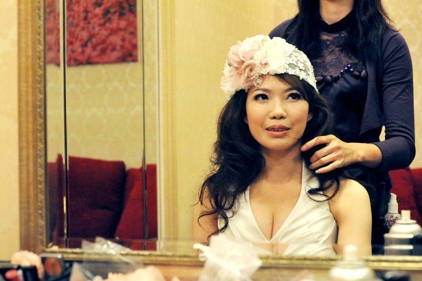 花帽是試妝時我就很喜歡的造型~但一直在猶豫及不知該用在哪套禮服~