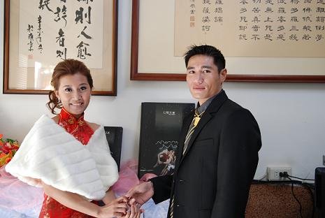 可是帥說:「妳穿旗袍我穿什麼?旗袍配西裝能看嗎?」