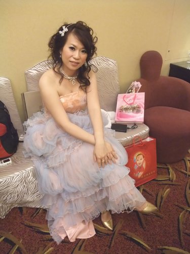 但我穿紅鞋是為了搭配我那套鮮紅色的敬酒禮服..(結果鞋子還是沒露出來)