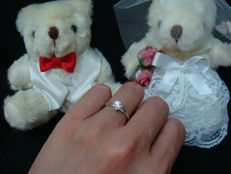 裸鑽加上六顆碎鑽,看起來有0.5克拉的效果耶 (開心)!!!