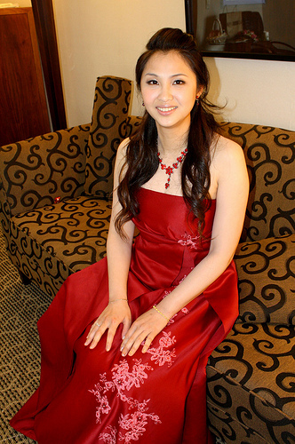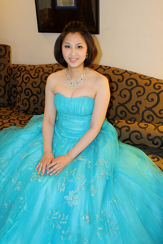 簡單利落的髮型襯托項鏈和衣服的華麗感。