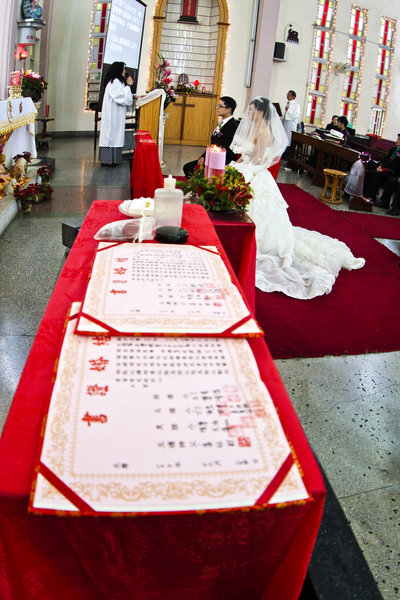 (結婚證書和一般書局賣的內容不一樣喔~是天主教特有的版本~!)