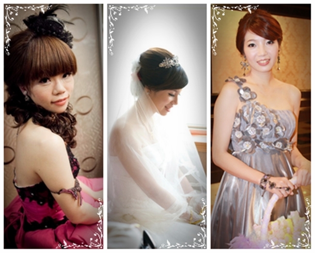我誠心的建議您可以先來試妝我的老師-EMI她畫妝的妝感看起來很自然 卻很無暇擅長擺飾真花跟各項飾品