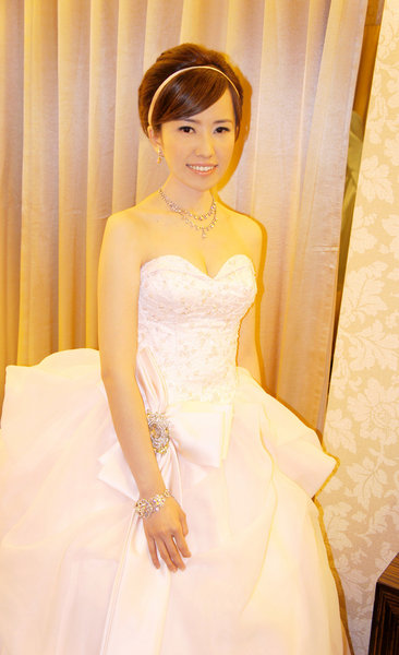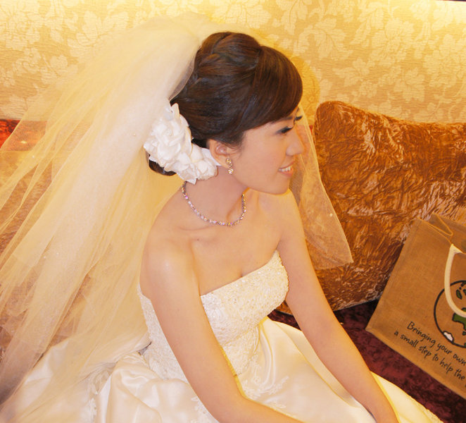 姐姐嫁的時候就是請Amber 幫忙的, 那時覺得Amber 把姐姐化的好美, 好自然..於是輪到自己的婚禮當然Amber 也是自己的第一人選囉......果然結婚那天的效果超滿意的, 只能說很幸運的在這麼短的婚禮準備時間, 找到好的新秘, 讓自己在結婚當天能完美的登場...值得一提的是Amber 真的很細心, 她會仔細聽你的需求, 並依照新娘的個人特質作出最適合你的照型...畢竟主觀意識太強的造型師總是比較難作到自己的理想結果(相信大家剪頭髮時都有過類似經驗吧)...而且她的造型很多變哦, 每每換一套禮服後, 她就能很輕易的作出讓自己想要展現的完美結果..一點都不用花太多力氣在溝通上...以下就分享一下我當天的造型吧..想找新秘的準新娘們, 可以參考下台北Amber Wu 的網址哦http://verywed.com/0958306681/makeup; 也希望大家婚禮當天都能當個最美的女人!!