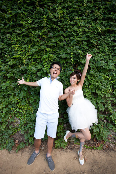 建議怕熱的新娘...要外拍最好準備一套短婚紗...