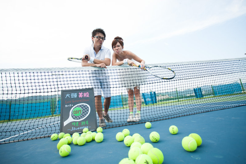 當初帥帥用"一起來學網球"來追我的,所以我們很堅持要在網球場拍照~