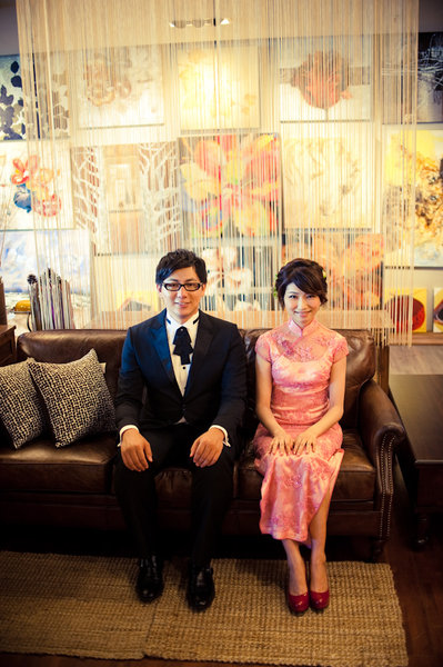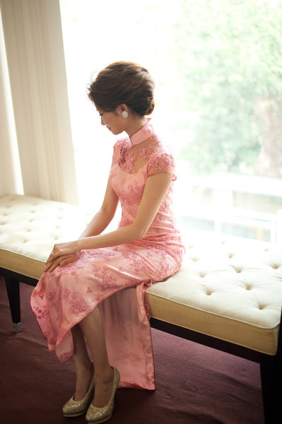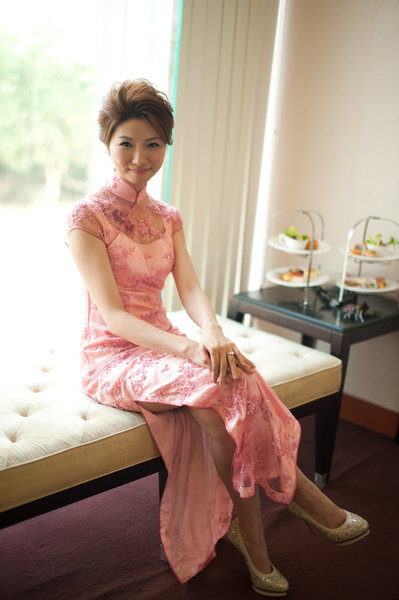 好粉好漂亮的旗袍喔!!結婚那天奉茶的時候穿這個一定超美的(我當時也是穿傳統的紅色旗袍)…現在想想,如果能早一點看到水水的文章,我一定要挑一件特別的旗袍穿>0<!