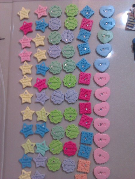 有四種形狀~上面的字都很適合婚禮上喔~