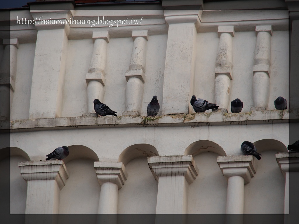 建築物上有好多鴿子喔!