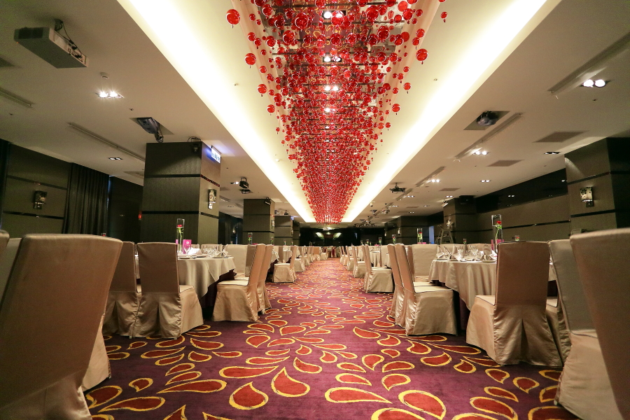 換個角度從門口往場地內看,可以看到很喜氣很特別的紅色珠珠天花板
