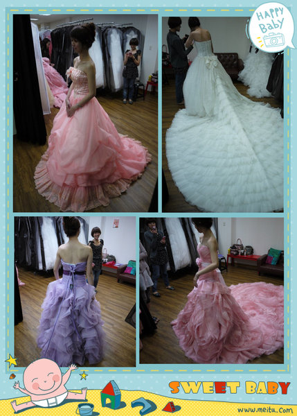 在挑選的過程中,Yumi先詢問我的喜好需求,看我挑選的風格,再以專業角度推薦可能是我喜歡,且也適合我的款式,還分別用手機和相機認真的幫我把這20幾件禮服,每一次試穿的樣子拍下來,給我專業意見!!比我老公還用心啊~~哈哈!!