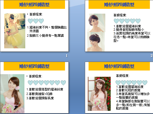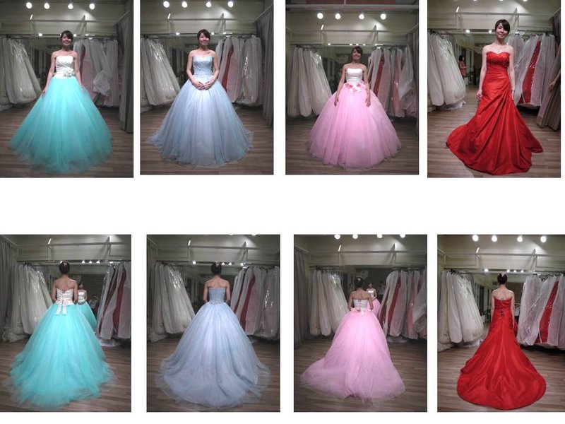 所以就把試穿後的禮服照片傳給Yumi看。她回覆也超迅速的,而且馬上將各件禮服的優缺點,一一分析給我聽~~~