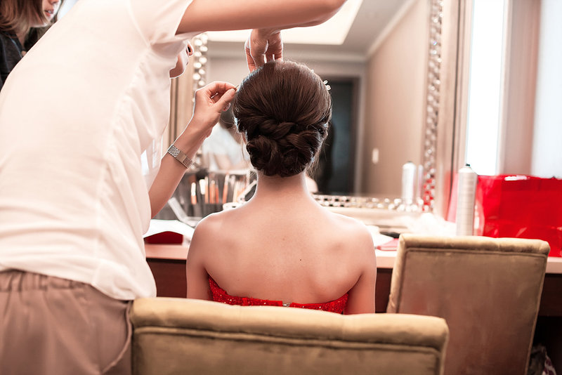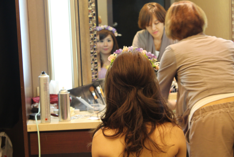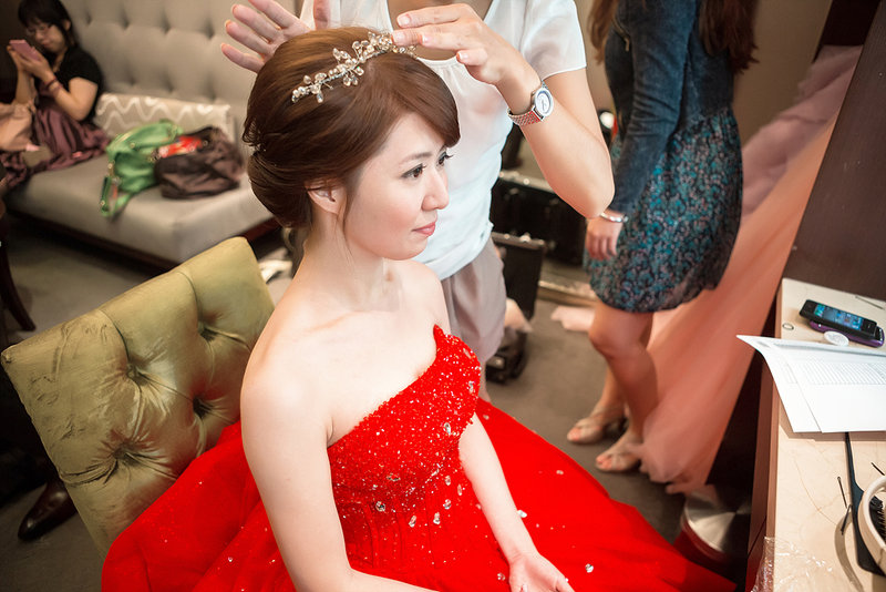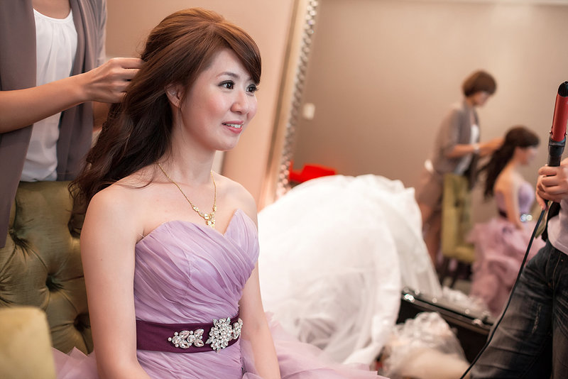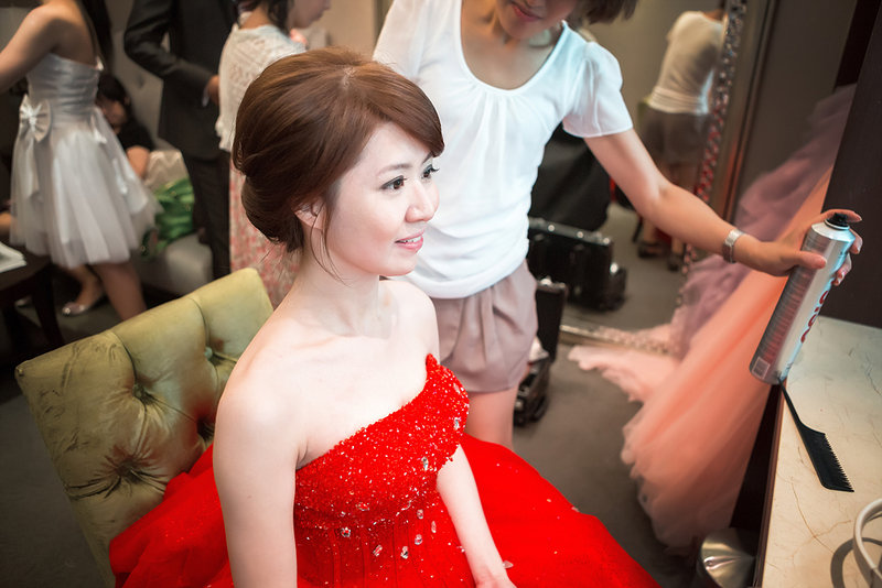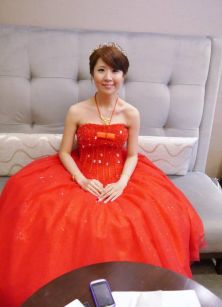 宴客當天由於我們較晚開席,所以結束時間有點delay,Yumi非常有耐心的等我們送客結束,還幫我把禮服都收的好好,之後又幫我綁上輕便的馬尾,這才離開~~~而且這中間她都沒有離開休息室! 真是超認真的新祕!