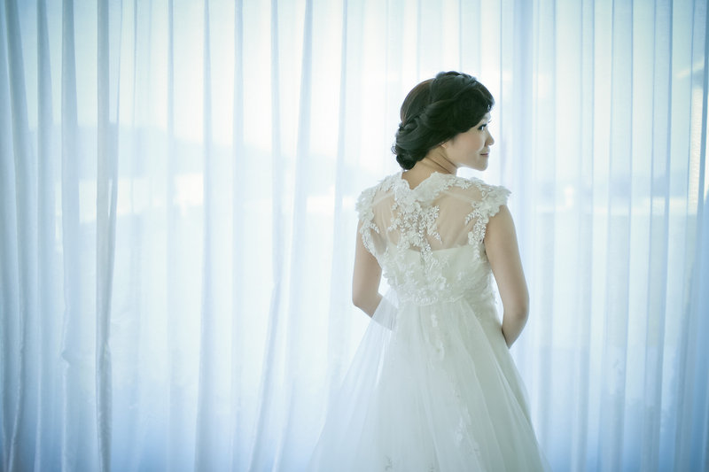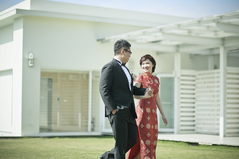 因為我是訂婚時連同女方親友一起宴客,為了想讓女方親友也看到我穿白紗的樣子,所以還是選擇了正統的白紗而