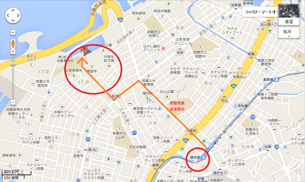 等等的路線如下圖,途中會經過那霸商業高等學校、松山公園、福州園、