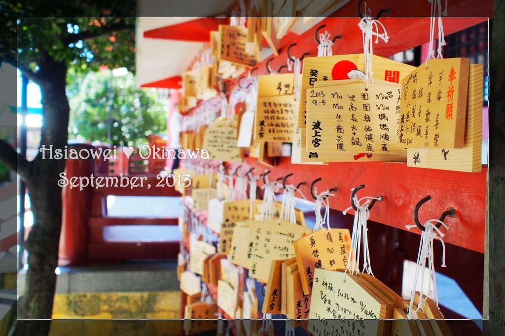 圖為波上宮的祈願繪馬一景,裡面看到了很多用中文字書寫的繪馬喔!很親切!