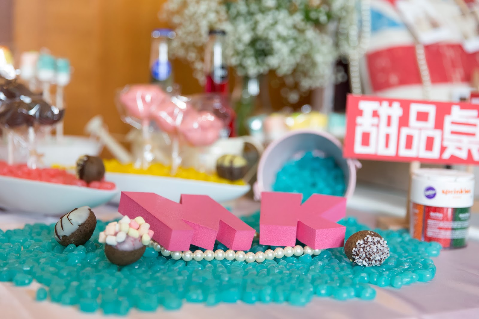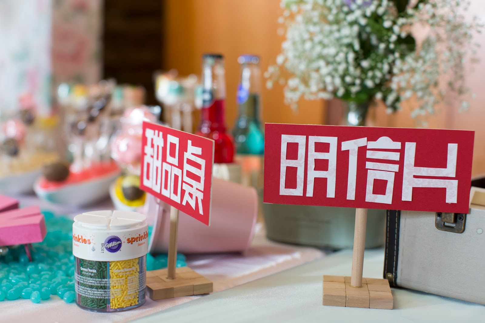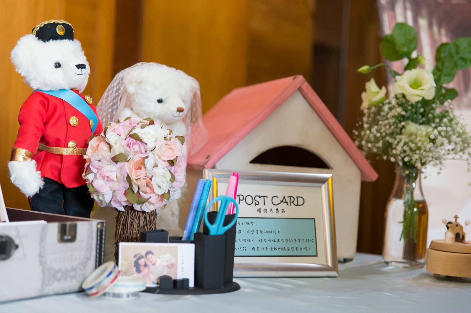 幫我們收紅包並且登記。旁邊有一些可愛的裝飾品還有鄉村風搭配的花材滿天星。