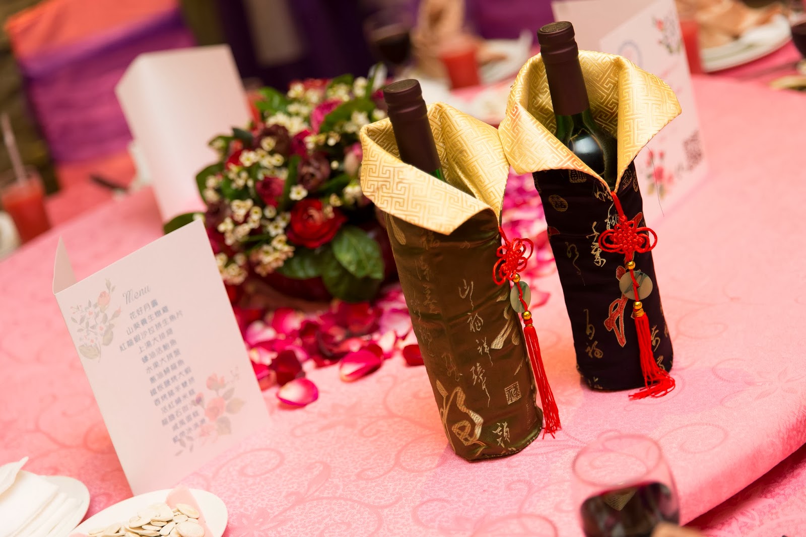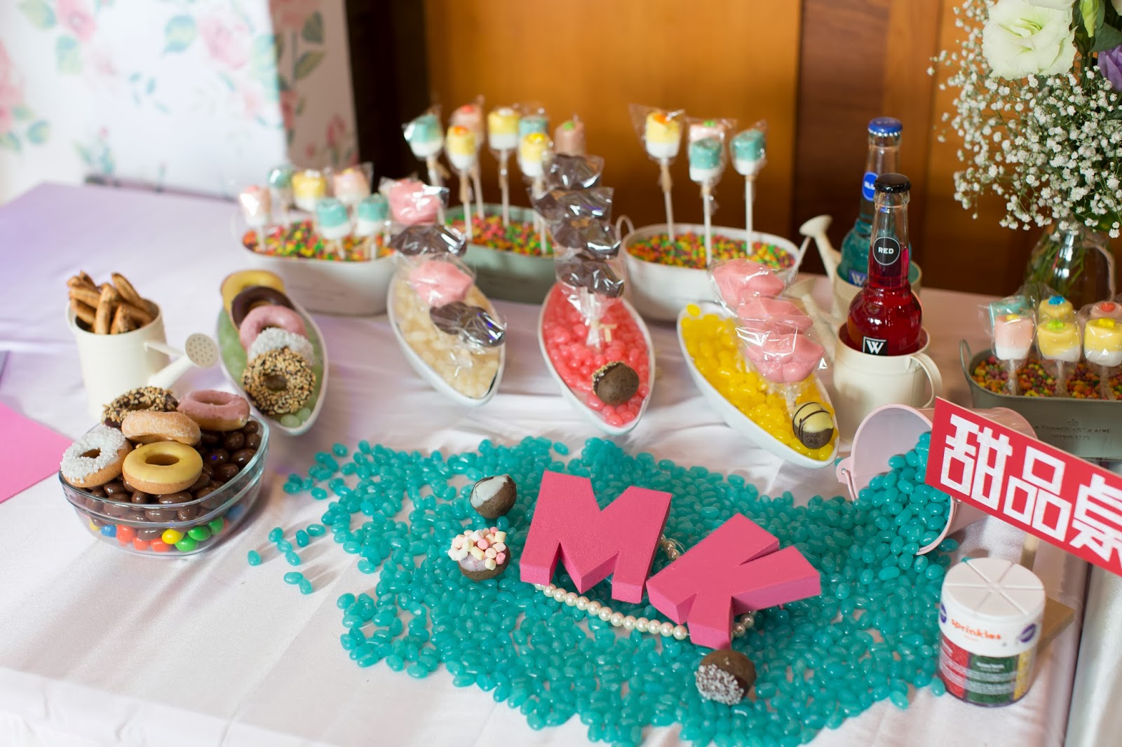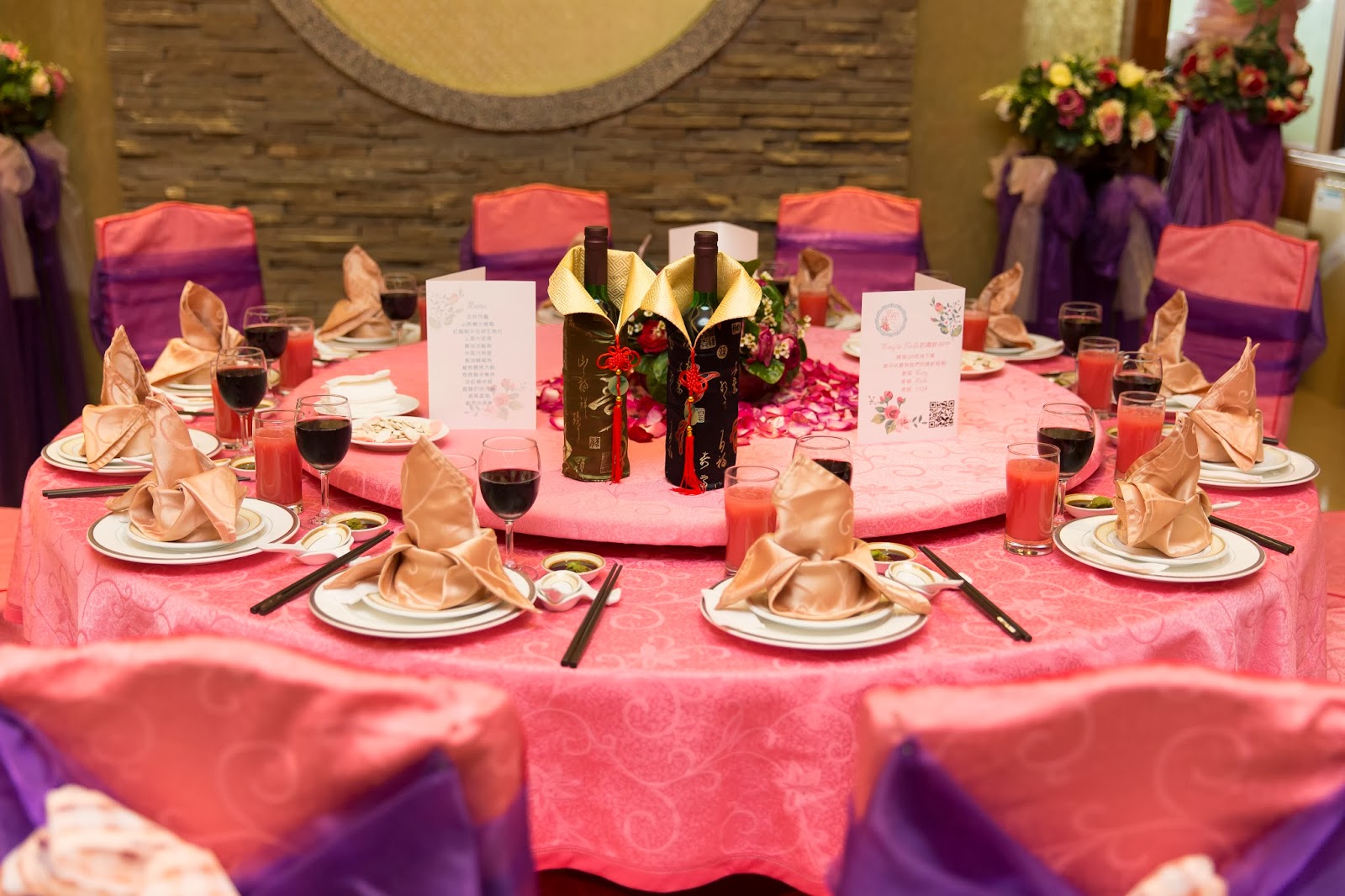 桌巾的部分表哥表姐幫我準備了粉藍及粉紅的桌巾,