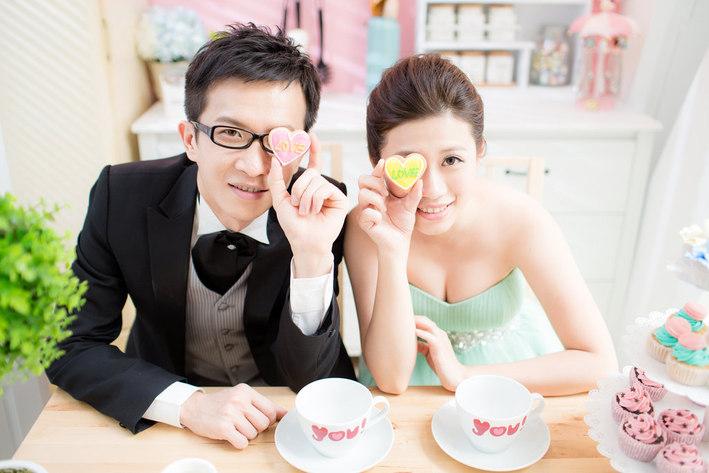 到了門市,人真的很多(在此提醒新人們真的要早一點去喔,不然離婚期太近太趕的話可能唯你就不會接了,畢竟品質是很重要的喔!)我們先去看攝影棚,唯你的攝影棚都是造景的,不是布幕,所以拍起來會比較自然些,我最喜歡的是下午茶場景,感覺甜甜的很可愛,也不用花錢去外面的咖啡廳,馬上省下一筆。