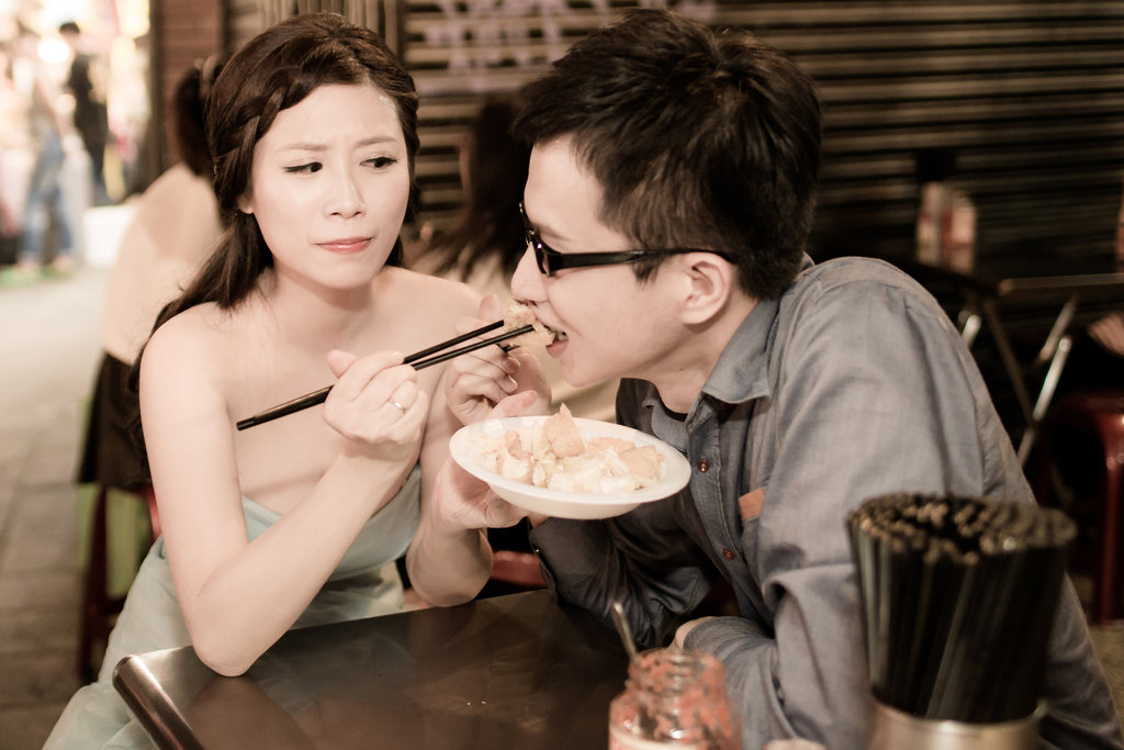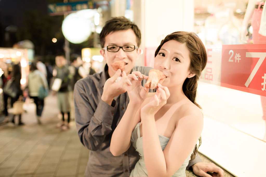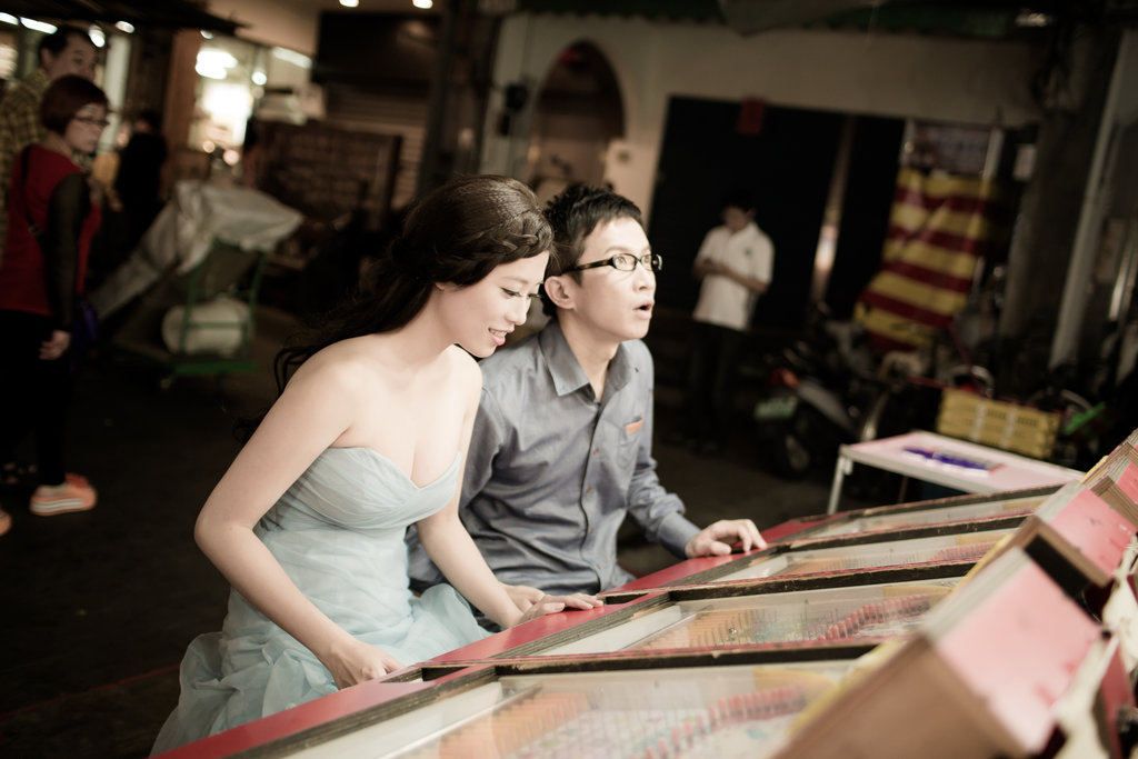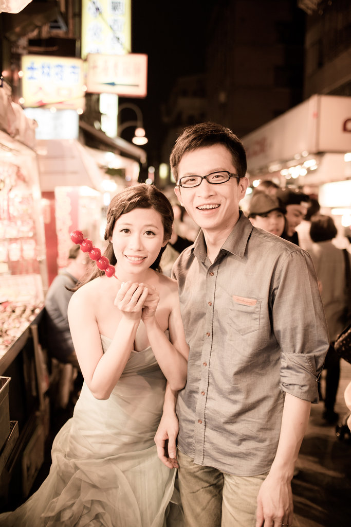 我們的攝影師阿喨一開始看到他藝術家的外表以為很不好溝通,但是不會喔,阿喨非常阿莎力,我想去人擠人的夜市拍照,阿喨一口答應,而且因為我們沒有大型道具(如氣球),所以阿喨也說不用租車,就攝影師、攝助及造型師三個人擠房車後座(其實如果我們租車,工作人員可以坐的很舒服,也不用一直報路給不是台北人的我們,哈哈)我們的攝影師真的很為新人著想,有時候阿喨還會私下去尋找他的秘密拍攝場景喔!