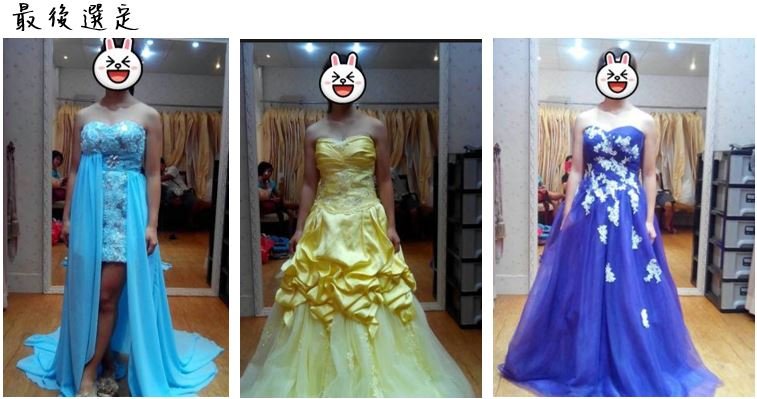 雖然是工作室,但是禮服選擇多,也都很新,以上提供給各位水水姊妹們參考囉~~