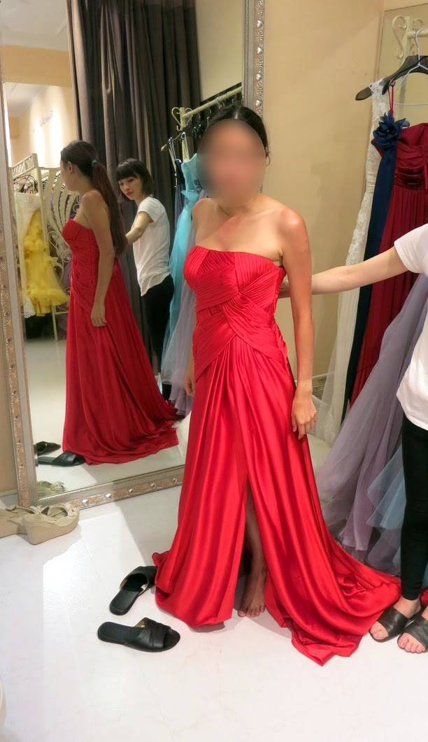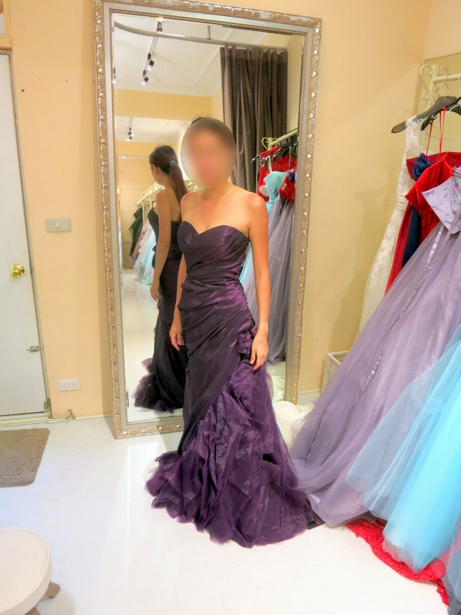 一開始一直很想找一件正紅色的晚禮服在海邊穿 可惜試了好幾件都沒遇見命定的那件,再加上也不是每件禮服都能去海邊..... 最後我只選了一件晚禮服 禮服一號: 其實我不是很愛平口的款式,真的是因為顏色試穿的 禮服二號 還是沒有很中意,這件看起來腰身不明顯 禮服三號 這件不能去海邊,所以真的是試穿好玩的 胸部的地方跟我完全不合,還有袖口也是 禮服四號 這件另外有附一件黑紗,可加可不加 加上黑紗之後 禮服五號 禮服六號 禮服七號 我自己很愛這件,不過另一半覺得還好 禮服八號 這件太甜美了我駕馭不來