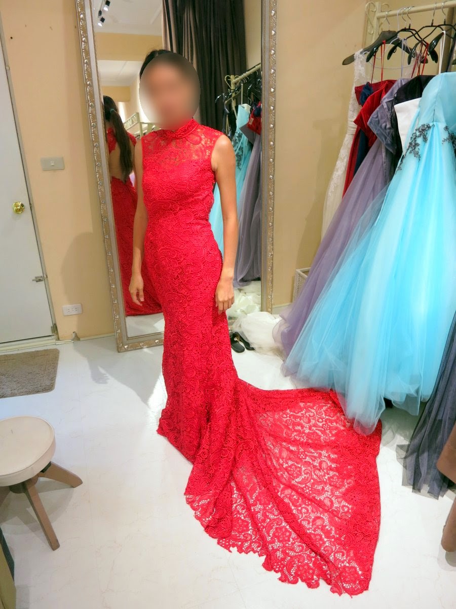 一開始一直很想找一件正紅色的晚禮服在海邊穿 可惜試了好幾件都沒遇見命定的那件,再加上也不是每件禮服都能去海邊..... 最後我只選了一件晚禮服 禮服一號: 其實我不是很愛平口的款式,真的是因為顏色試穿的 禮服二號 還是沒有很中意,這件看起來腰身不明顯 禮服三號 這件不能去海邊,所以真的是試穿好玩的 胸部的地方跟我完全不合,還有袖口也是 禮服四號 這件另外有附一件黑紗,可加可不加 加上黑紗之後 禮服五號 禮服六號 禮服七號 我自己很愛這件,不過另一半覺得還好 禮服八號 這件太甜美了我駕馭不來