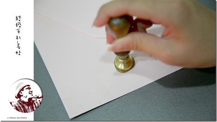 (這時有一點小技巧,會用封蠟章用劃圓的方式給推開,這樣子蓋起來比較好看,也比較省蠟)