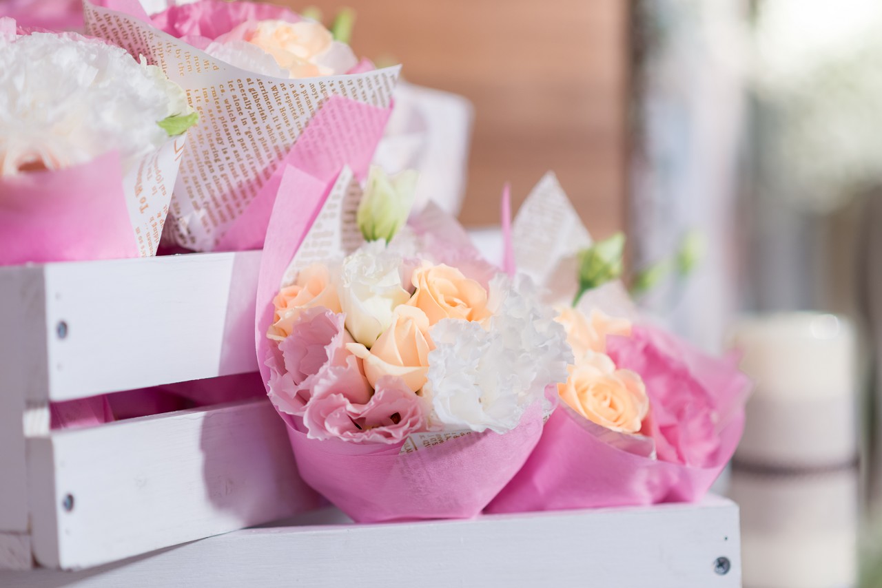 【結婚宴客佈置】小花束是佈置的一部分、也是後來的捧花禮...