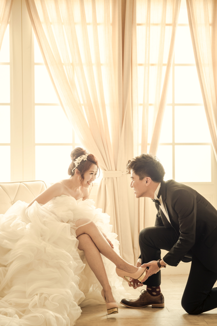經典穿鞋pose!跟鞋也是在淘寶買的~淘寶真是新娘的好朋友