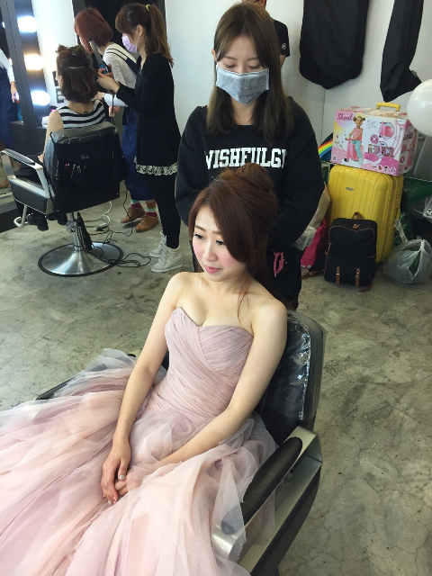 非常可愛的造型師,當天我們是第一組梳化的客人(早上7點鐘),就是她來開門拯救我的