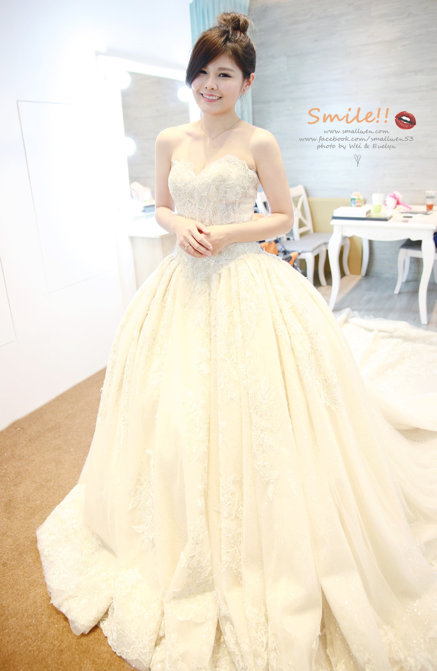 穿起婚紗時的笑意真的藏也藏不住耶((覺得自己好美~飛踢))