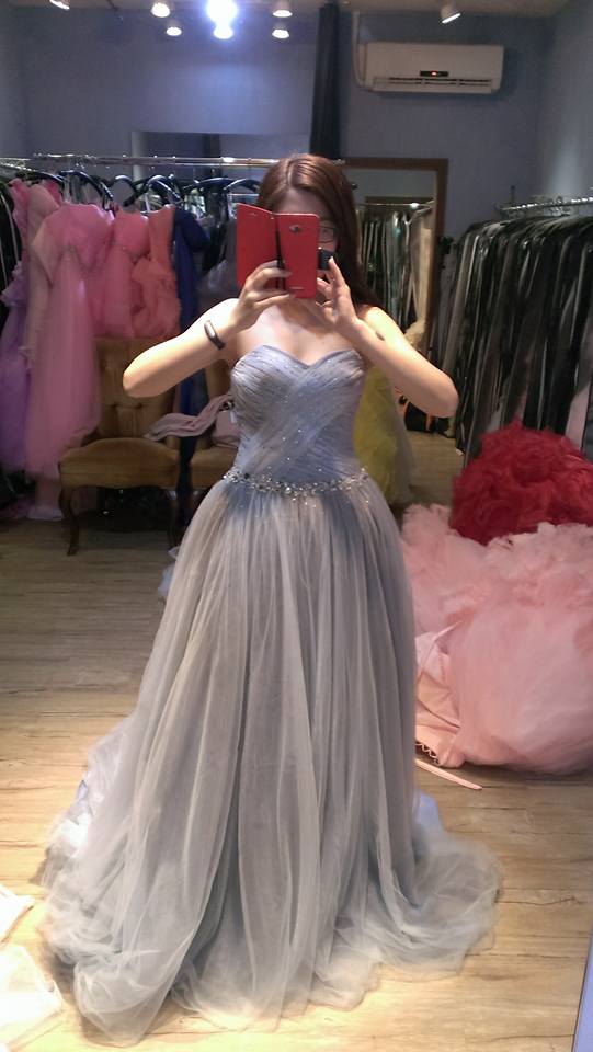 我在試拍照禮服時小小許了個願"好希望宴客時可以穿蜜桃色的禮服"