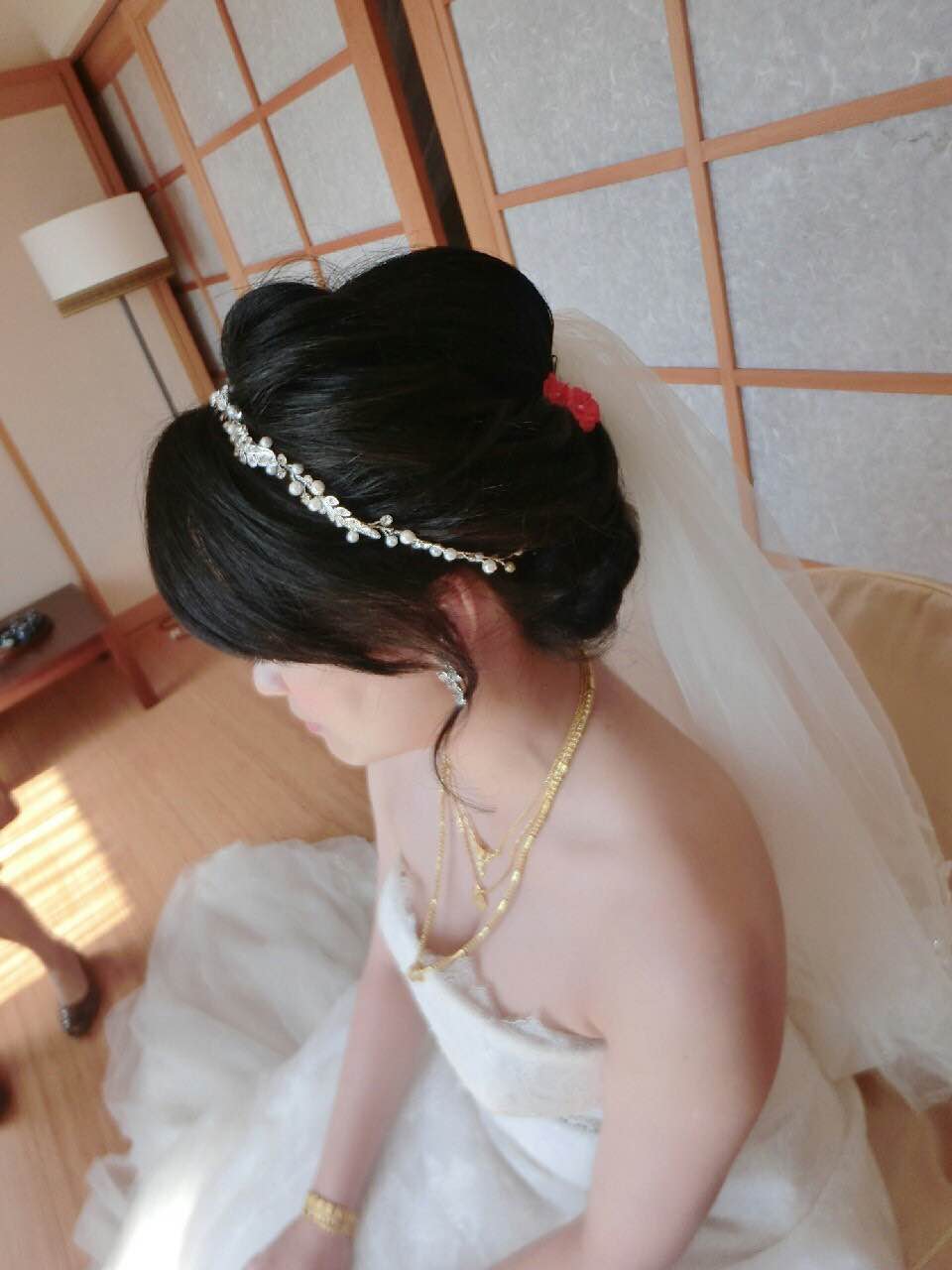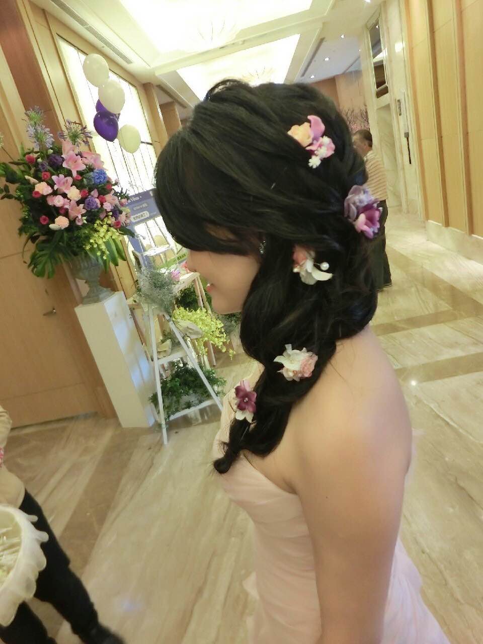 就是婚宴結束後, Rita Luo老師幫我把髮夾啦,飾品啦拿下, 等我換完衣服後, 又再幫我梳個公主頭造型, 讓我可以搭配那時候的便服。