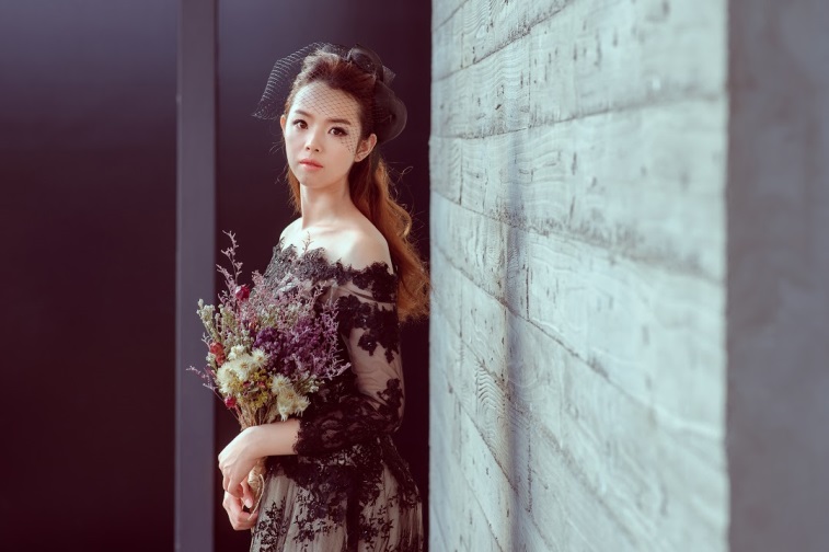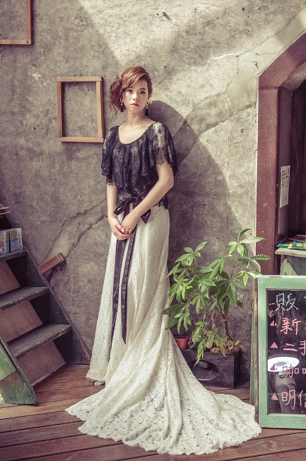 像這件婚紗原本只是素色的白紗,店長加上黑罩衫整個感覺,完全是不一樣,真是有獨特的眼光、技術!