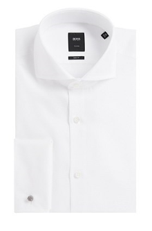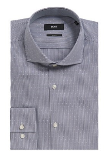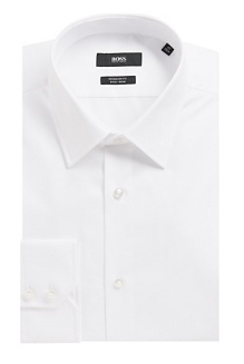 ↑一開始來outlet Jack就抱定主意只打算找類似上圖這種我們稱他為"平領"的襯衫(下圖則是傳統襯衫常見的領型),而且基本款的白色平領襯衫是看到一定要入手的。第一次看到平領襯衫就是我們為了訂婚去買BOSS西裝的時候。當時架上展示了搭配西裝外套的LOOK,其中有幾件很吸睛,看起來特別有型的就是這種平領襯衫。但價格一問之下一件就要8、9千(官網看某些平領的款示甚至要1萬多),讓人打退堂鼓,但自此Jack就對它念念不忘(因為它夠特別呀