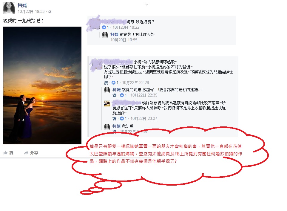 真正跟他接洽過的新娘,辛苦妳們了,因為我有著跟妳們一樣的遭遇,可能還更慘?!
