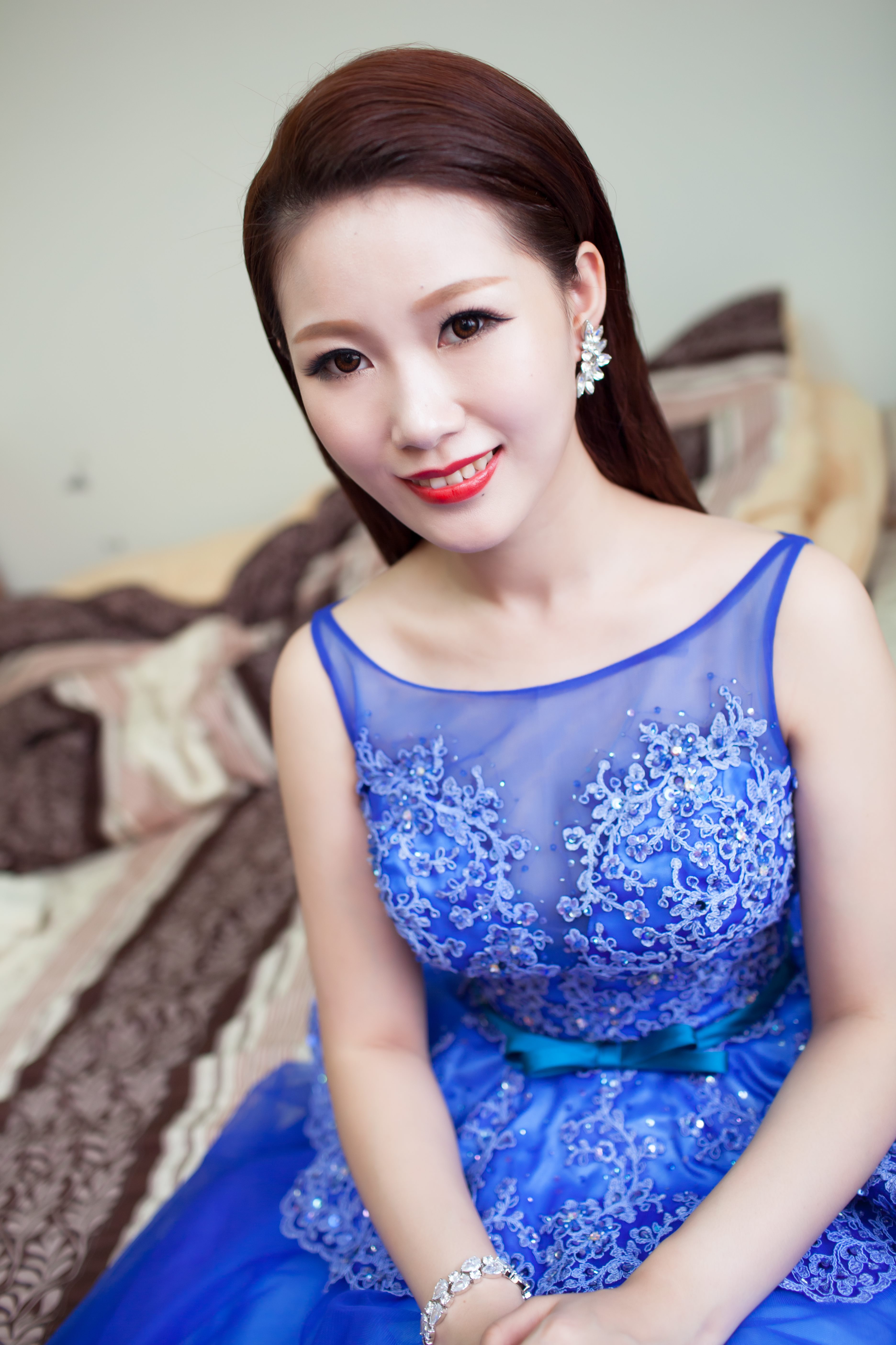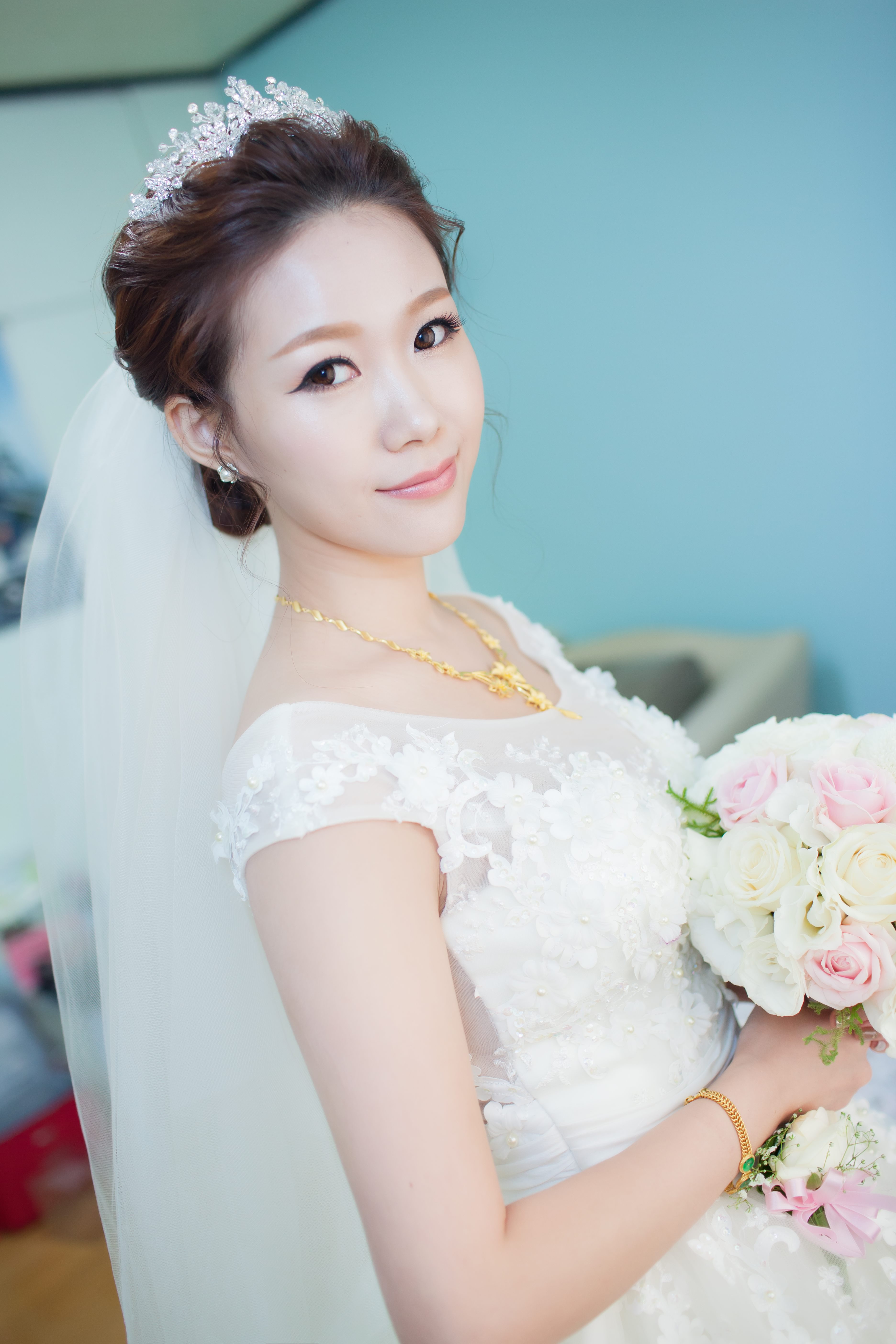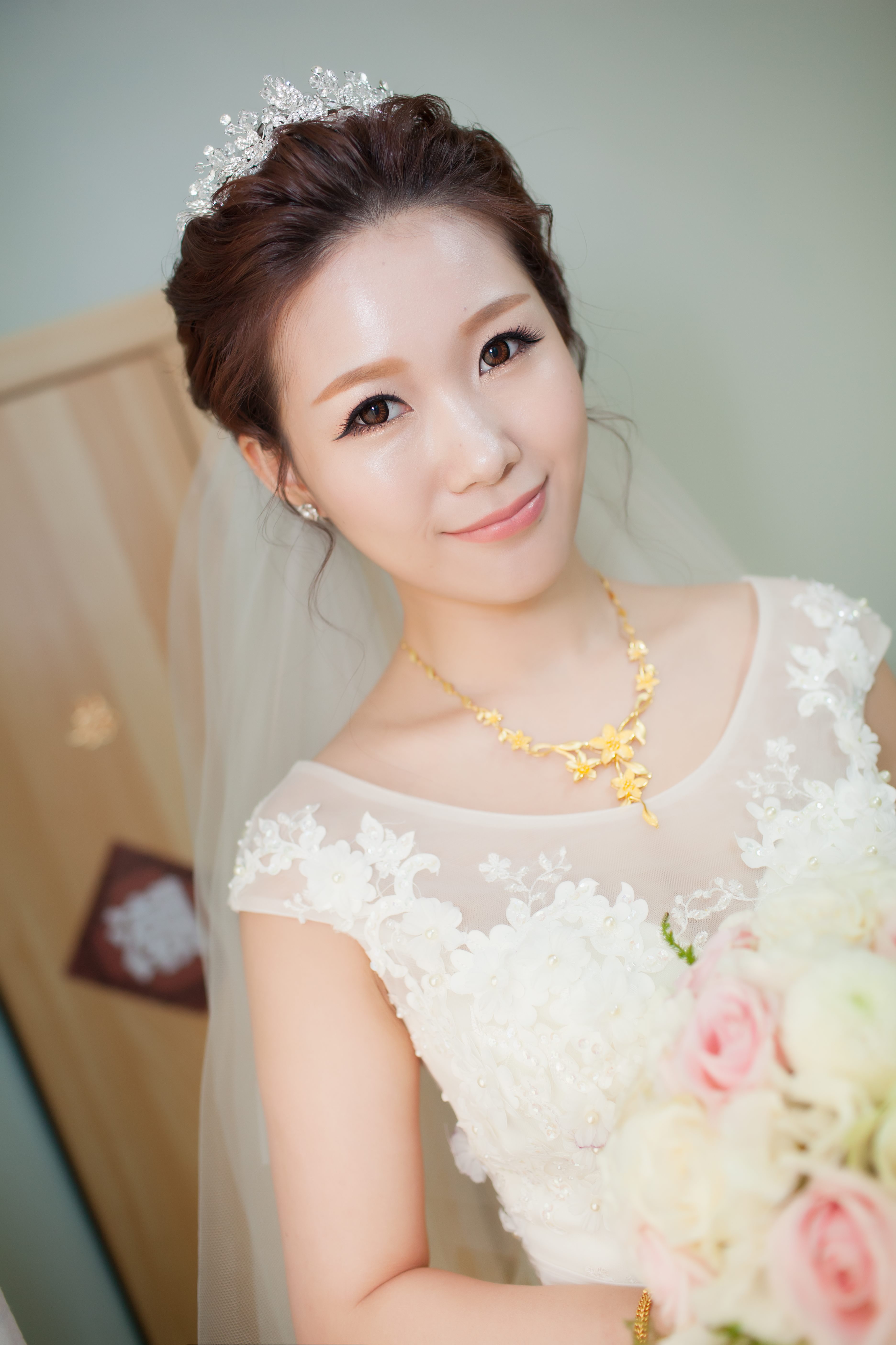 期間我還把結婚當天穿的婚紗及喜歡的妝髮造型圖片通通傳給了老師.老師會依照我的婚紗款式風格和顏色來搭配我的造型&飾品.讓我非常安心