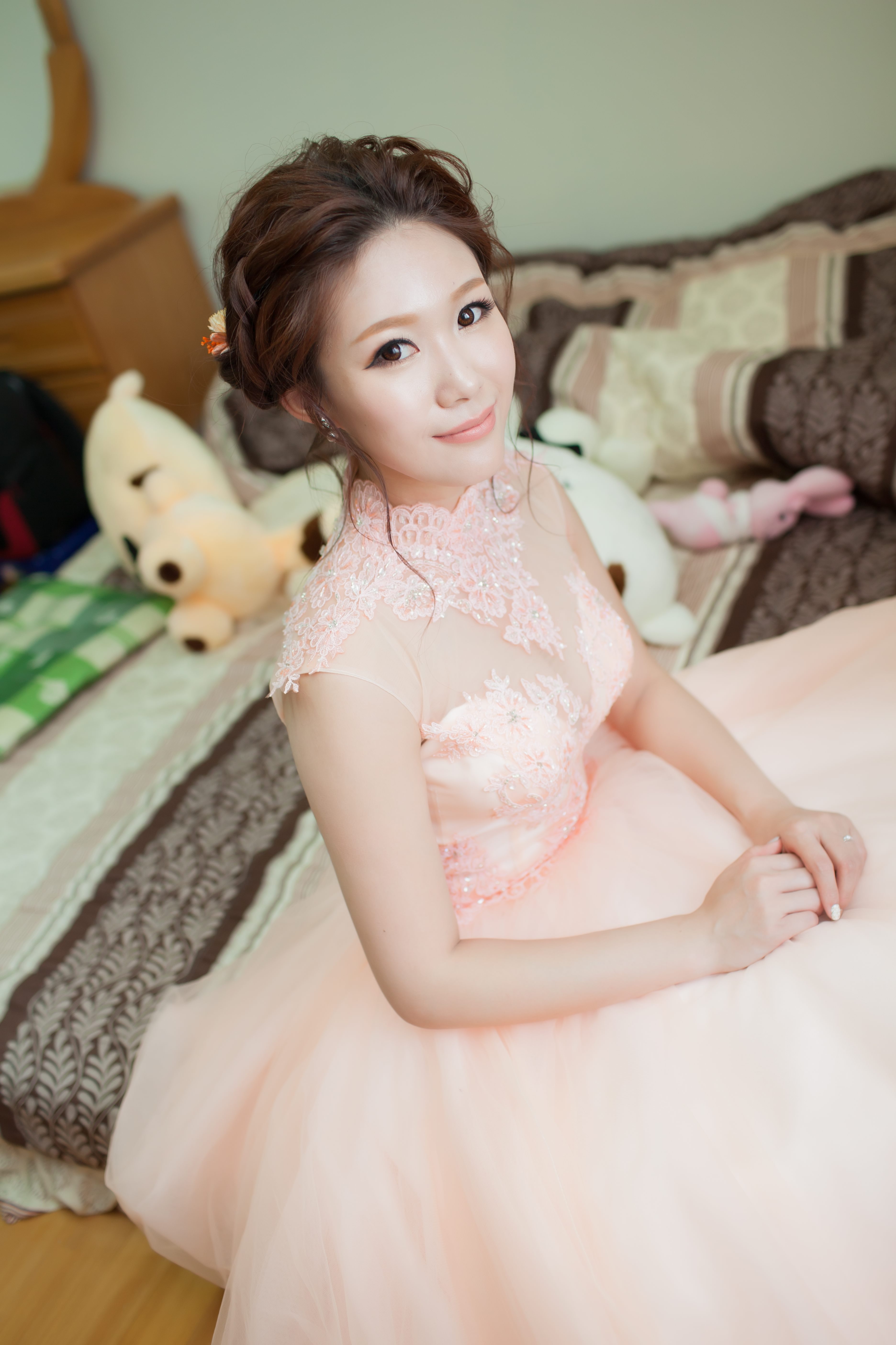 宸羽老師原本也是從事美髮行業後來才轉當新秘的.我們對妝髮都有一樣的堅持.看了做品以後我又更加的放心.二話不說馬上下訂.哈哈